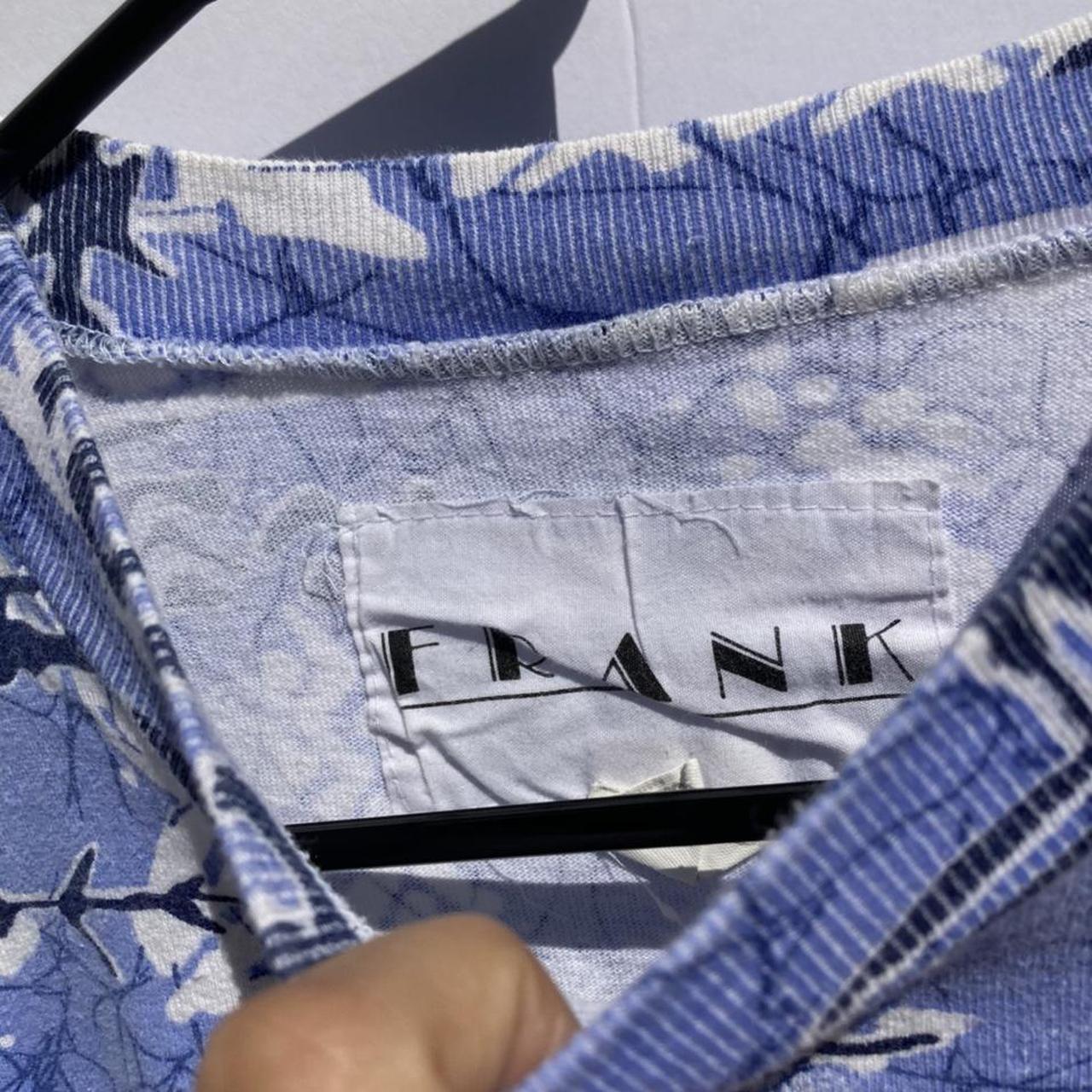 - light powder blue t-shirt with cool abstract all over print in white and navy blue colorway