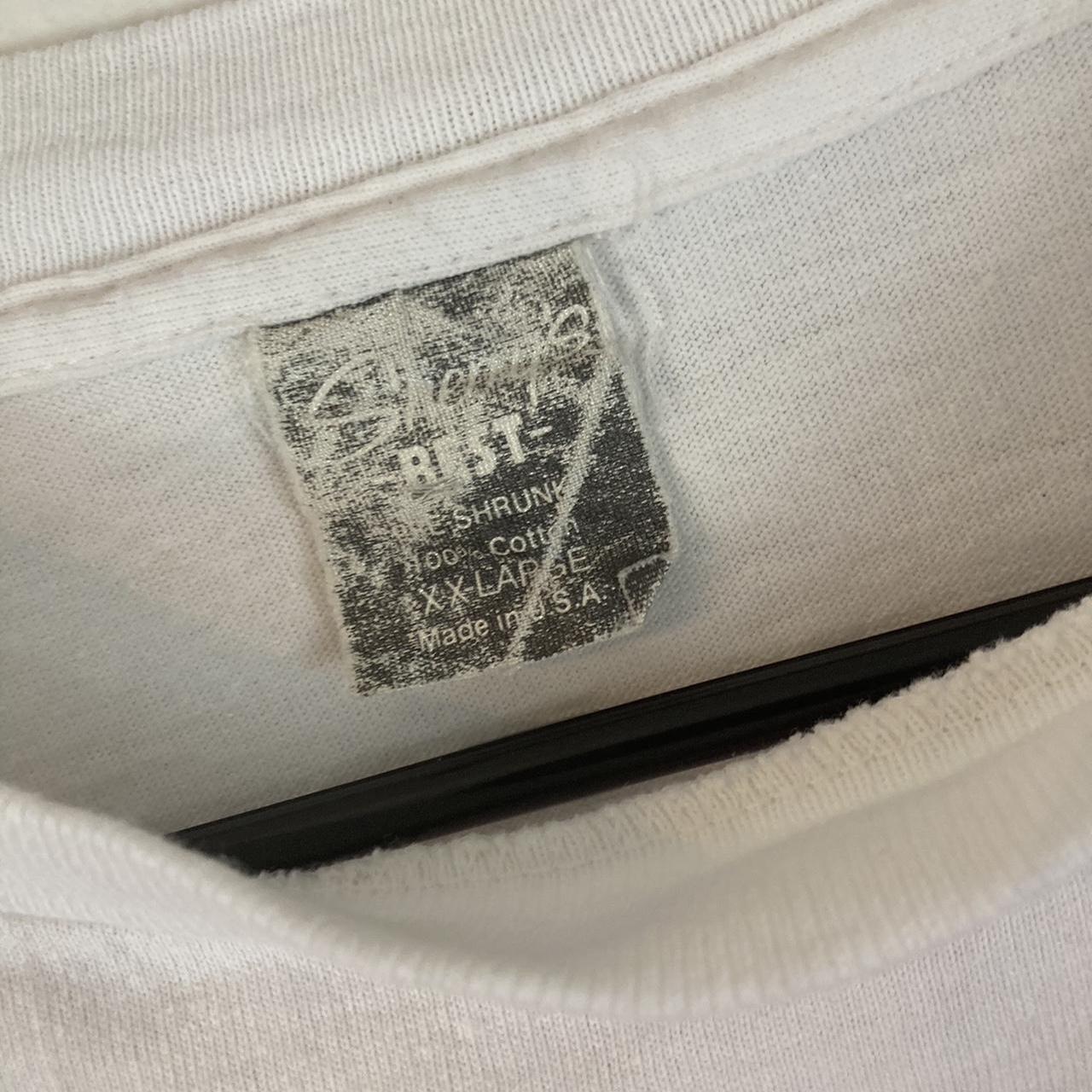 -white t-shirt with multi colored lettering that says Mickey going across chest and back with graphic of mickey painting letters on back