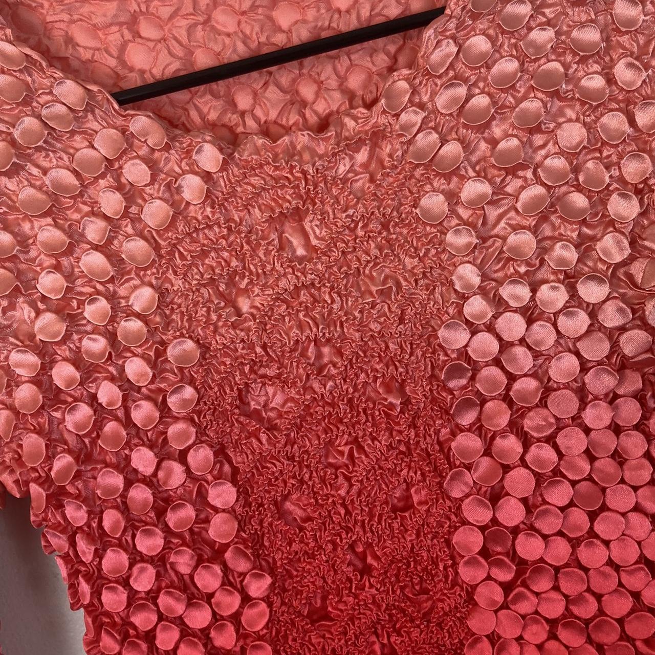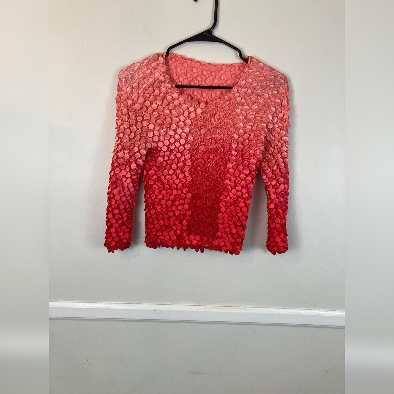 -super fun blouse with cool pop design all over in ombre that fades from light pink to orange